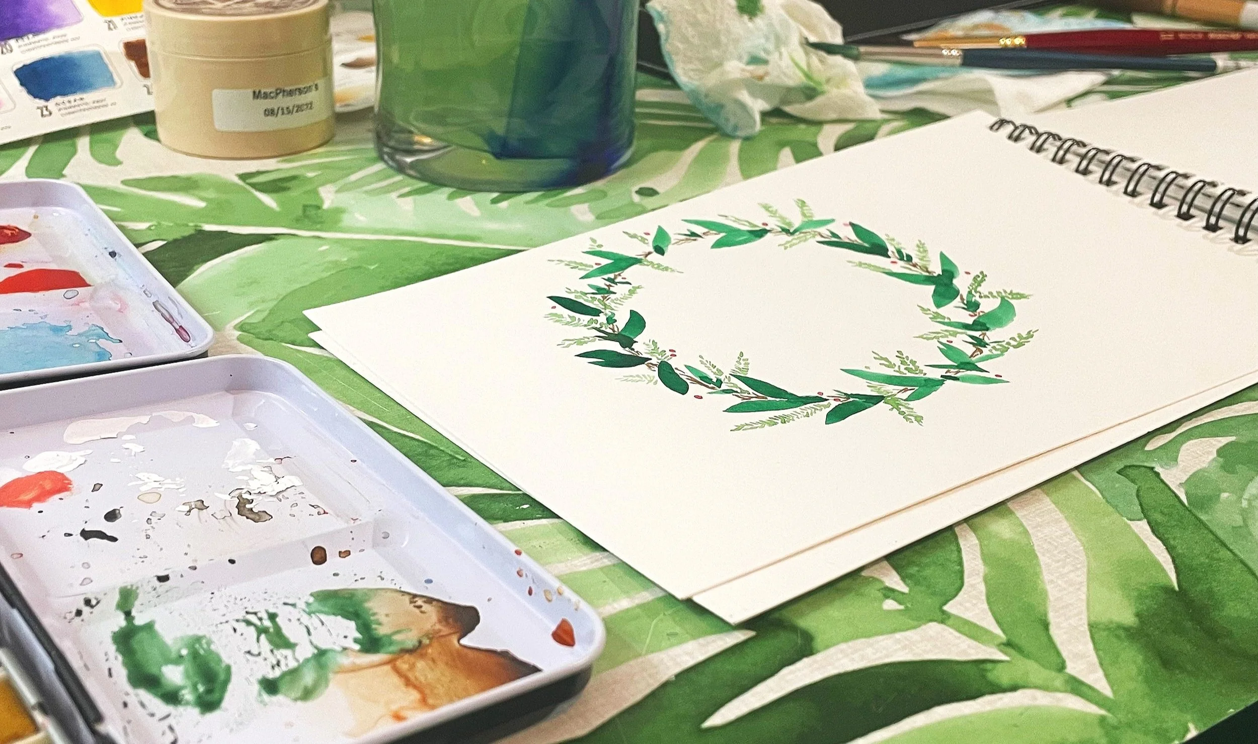 I discovered watercoloring in college through a costume design course. Watercolor is a wonderful medium for transferring the folds and wrinkles in clothing to the canvas as the method allows you to stack multiple transparent layers and create depth and shadows in a natural way. I’ve continued hobby after college as a way to relax and clear my mind. I have experimented with foliage, landscapes, and even architecture, and always enjoy trying new techniques and pigments.
